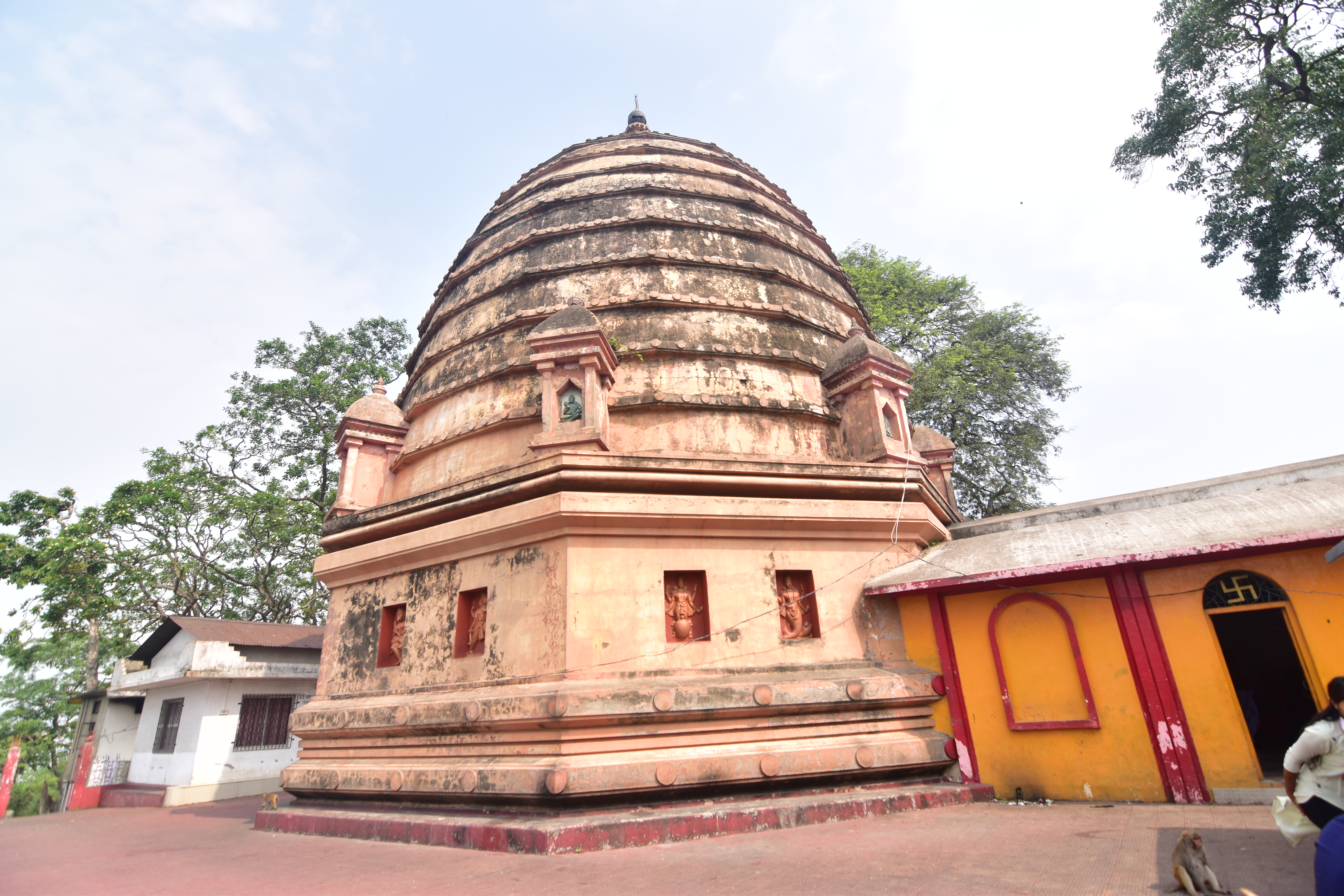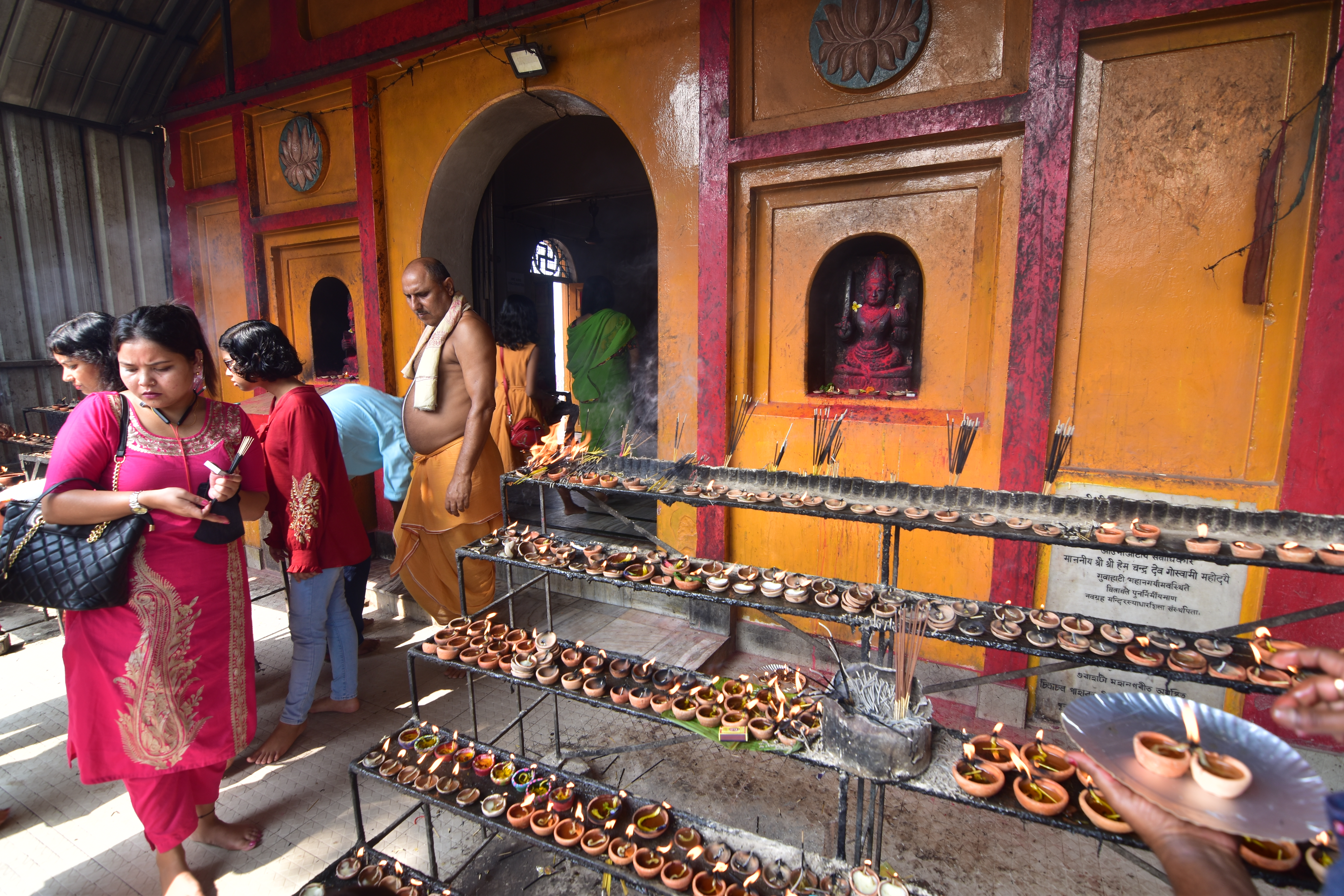 Navagraha temple or the temple of nine planets is situated atop the Chitrasal hills in the heart of Guwahati. This temple is devoted to the Nava graha (the nine planets). These celestial bodies are named Surya (Sun), Chandra (Moon), Mangal (Mars), Budh (Mercury), Guru/Brihaspati (Jupiter), Shukra (Venus) Shani (Saturn), Rahu and Ketu . This temple is enshrined in nine Shivalingas, representing the nine Celestial bodies, each covered with a colored garment symbolic of each of the celestial bodies, with a Shivalinga in the centre symbolising the Sun. It is said that this was a significant centre of study for astronomy and astrology. Devotees flung to this temple to make horoscopes of their new born children. Many people offer their prayings in this temple for their well-being. It is also believed that if there is any imbalance in their planetary positions or a particular planet is overshadowing another, one should visit this temple and offer special prayers. The Navagraha temple was built by the Ahom king Rajeswar Singha in the late 18th century.